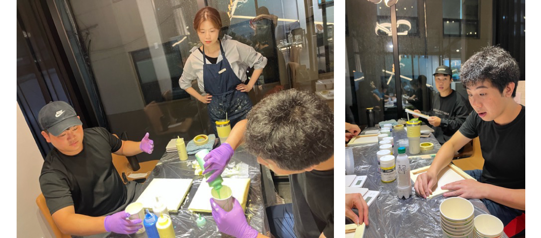 무엇보다 각자 완성된 작품이 합쳐져 하나의 작품으로 카페&교회 공간의 일부로 전시가 될 것임을 모두가 인지한 상태로 시작되었답니다.