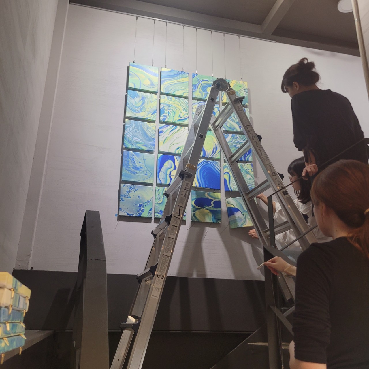 작품을 완전히 말린 후 와이어를 다는 과정까지 시간이 조금 걸렸지만, 각 지체들의 작품이 하나하나 연결되어 커다란 작품으로 완성되었습니다.