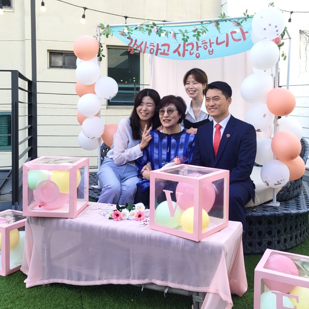 여러 모양으로 장식된 교회 모습도 생각납니다. 고급스러운 예식장을 방불케 하는 테이블보와 생화가 놓인 테이블은 초청과 환대에 아주 적격이었습니다. 웰컴드링크는 또 얼마나 맛있었는지 엄마와 동생이 받고 5분 후에는 얼음만 빨고 있었습니다. 다른 가족분들까지 오시니 엄마는 더 편해지셨는지, 다른 어머니와 대화를 시작하셨습니다.
